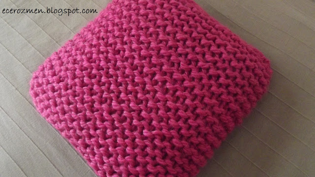 bu ipi aldığımda aklımda oklava yoktu tabii:) piyasadaki en kalın şiş 12 numaraymış ve çok sıkı bir örgü oldu ... söktüm iki oklava aldım:) evdeki tahta boncukları oklavanın uçlarına yapıştırdım ve ördüm:) biten örgüyü de kırlent haline getirdim.. en ilginç örgü deneyimimdi:)